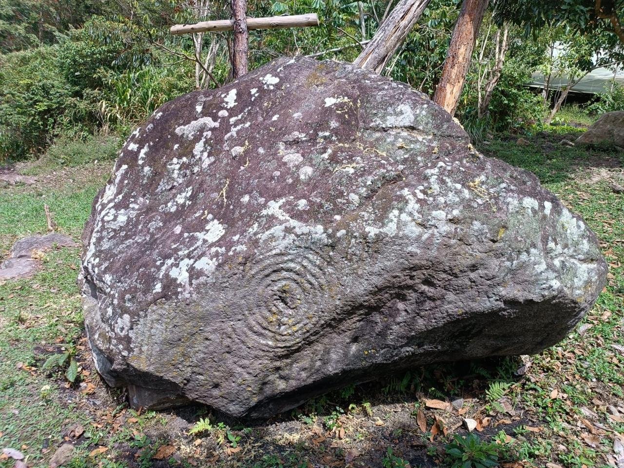 Es una piedra grande, que tiene grabado en el centro un espiral. Cuentan los mayores, que los primeros habitantes de esta vereda, asumieron que tenía forma de un rejo, pues desconocían la simbología de la espiral, por eso, viene la palabra, Kweth que es piedra y Khatxa que es el rejo. Este lugar, está muy relacionado con la riqueza que tenían anteriormente los comuneros, que, para ellos era el ganado. En esos tiempos; las vacas, los ovejos, las cabras, los caballos, pastaban al aire libre y cerca de esta piedra, no había necesidad de cercas o encierro, esto era como su nombre lo dice, comunitario, era de todos y para todos.